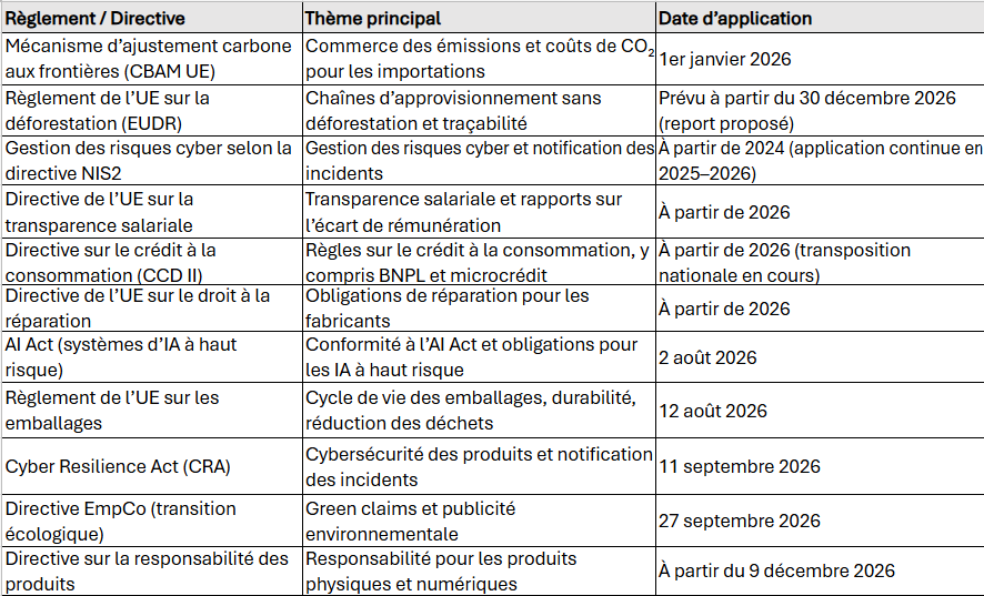 - Aperçu des changements réglementaires de l’UE entrant en vigueur en 2026